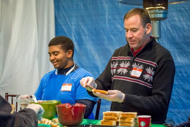 Two weeks ago, I received an email from ECG co-owner Jason Marraccini inviting the ECG team to participate in Landmark Restorations’ 33rd Annual Peanut Butter and Jelly Sandwich Making Session. This being my first holiday season while working at ECG, I was excited to learn that community service is something the company values and encourages. So, on Thursday the 18th, one week before Christmas, ECG Productions set aside some time to get into the holiday spirit by volunteering at the event.
